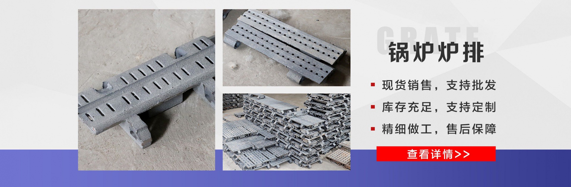 麗新機械配件廠位于“江北水城”之稱的聊城。公司主要銷售:鍋爐爐門,爐篦子,爐排片,鍋爐爐排,省煤器管,鍋爐風帽,鍋爐配件等多種產品,公司堅持以市場為導向、以誠實守信為經營理念,竭誠為廣大客戶服務!  爐排是鍋爐或工業爐中堆置固體燃料并使之有效燃燒的部件。整個爐排主要包括框架和爐排片兩個部分。爐排片通常用鑄鐵制造,組裝后片與片之間保持必要的通風縫隙,并且往往還在爐排下邊設置可以調節風量的分隔的通風室,以便空氣通過縫隙進入燃料層燃燒。燒盡后的灰渣用人工或機械方法排出。爐排有固定式、移動式、往復式、振動式和下飼式等類型?! ″仩t爐排操作實現了機械化,減輕了司爐工的勞動強度。快裝出廠,到使用現場后,裝接閥門儀表,鼓、引風機、煙風管道、省煤器、除塵器、出渣機。上煤機及水電路等即可運行,且具有起動生火快等特點?! 」緫{借豐富的規格品種,過硬的質量,合理的價格,完善的服務,不斷地受到新老用戶及業內人士的肯定和信任,我們本著及用戶之所及,想用戶之所想的服務宗旨不斷地拼搏,進取,在此對多年來支持我們的各行各業的新老朋友表示由衷的感謝!  我公司的理念:“誠信、合作、互利、雙贏”!以最大的努力滿足客戶的需求。...